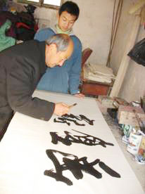 他用一管毫将黑与白的艺术演绎得出神入化,或粗或细的线条挥洒自如,如椽大笔把墨韵渲泄得淋漓尽致。他是个只专注于写字的人,痴迷于古帖拓片,一心笔耕砚田,不汲汲于富贵,不戚戚于贫贱,视名利如浮云,所以他能静下心来,用纸墨这方水土来安置自己的才情和性情。